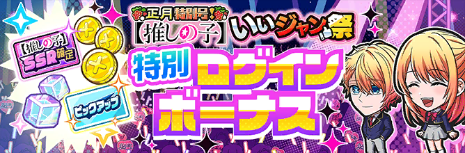Log in during the period below to earn luxury rewards including the Oshi no Ko Guaranteed SSR Gacha Ticket!