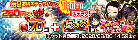 One time only per customer, you can purchase 750 rubies for 3060 yen. You will also recieve a Defeat Raizen Battle Ready Ticket. This ticket has [Raizen’s Successor] Yusuke Urameshi, Creed Diskenth, Urahara Kisuke and The Ninja, you will recieve one at random.
